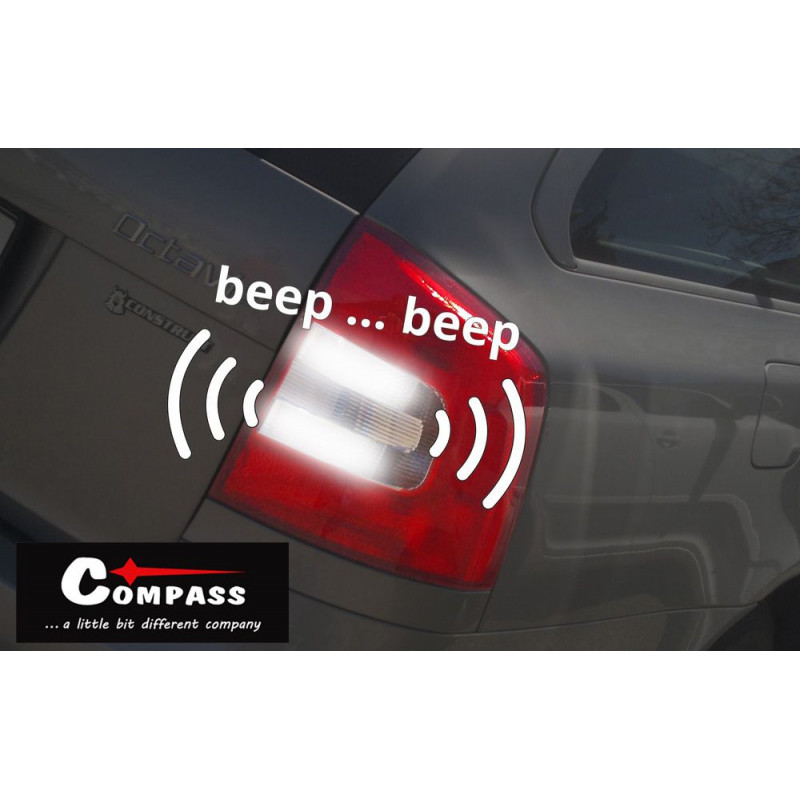 Pri cúvaní vozidla vydáva varovný zvukový signál. Univerzálna pre automobily s napájacím napätím 12 V a žiarovkou spätného svetla s päticou BA15s. Cúvací alarm je osadený žiarovkou 12 V (celosklo).