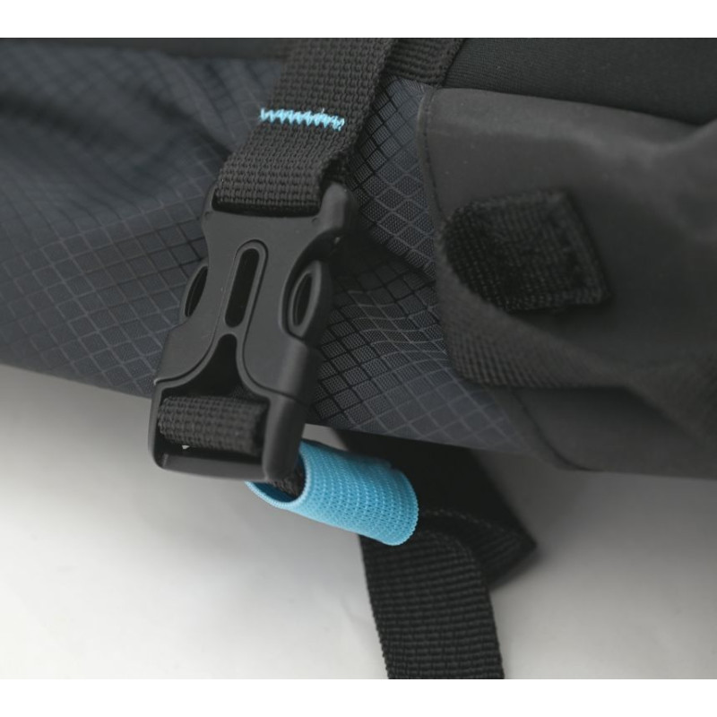 Keď naplníte tašku svojimi vecami, vrchná časť sa 3-4x zavinie a zabezpečí pomocou praciek na bokoch tašky. Navyše je vrchná časť doplnená o gumové šnurovanie, ktoré je možné využiť na uchytenie ďalšieho vybavenia.