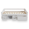 Vytvorte útulnú a štýlovú izbu s posteľou, ktorá ponúka nielen pohodlné spanie, ale aj dostatok úložného priestoru pre hračky, knihy či lôžkoviny. Vďaka modernému dizajnu a univerzálnej bielej farbe sa hodí do každej detskej, študentskej i hostinskej izby. Praktické zásuvky a otvorená polica pomôžu udržať poriadok a využiť priestor na maximum.