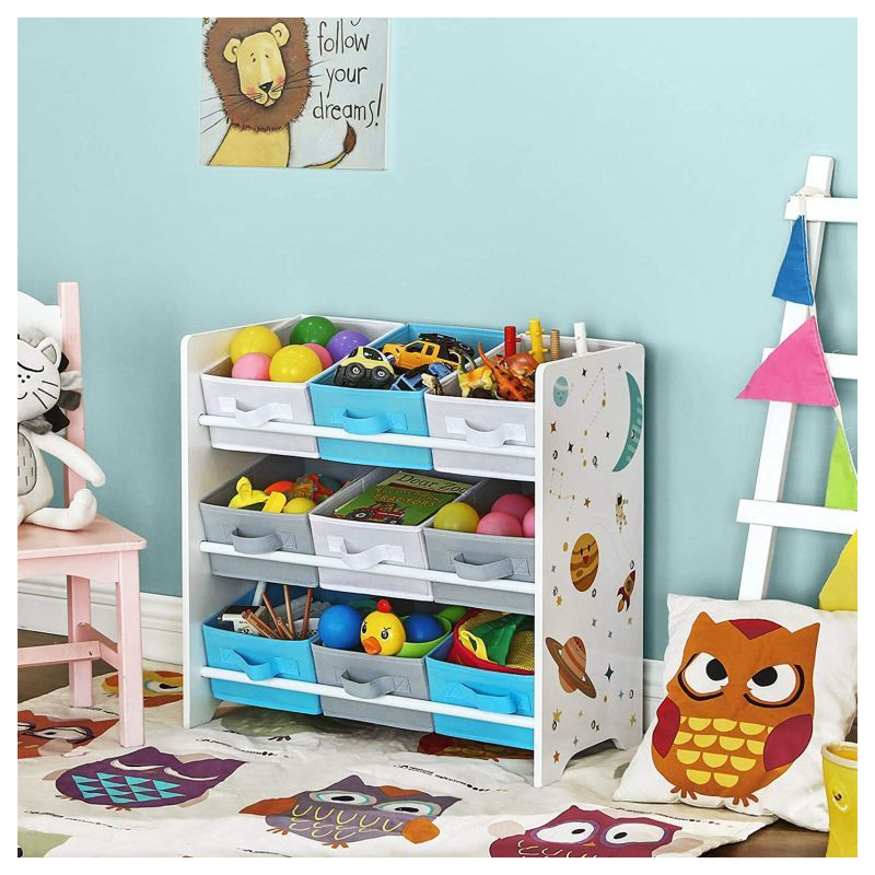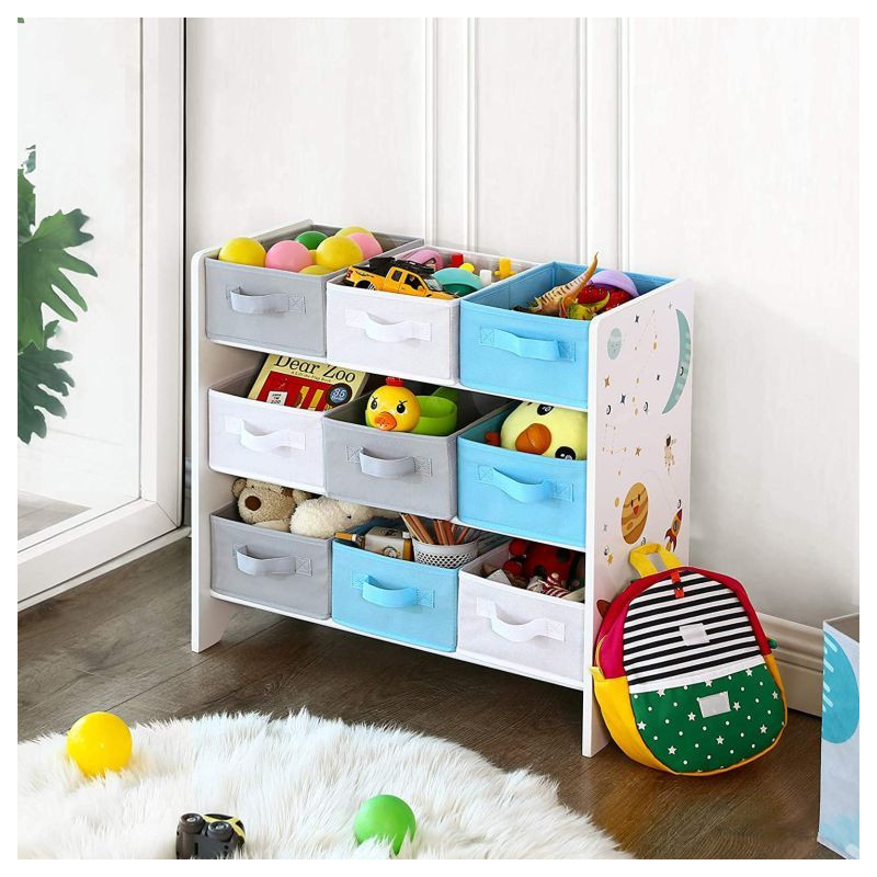 Hviezdy a planéty rozsvietia izbu a premenia upratovanie na zábavu. Deväť farebných košov sa ľahko vyťahuje a pomáha deťom triediť a vracať veci na svoje miesto. Ideálna veľkosť pre samostatnosť aj radosť z poriadku.