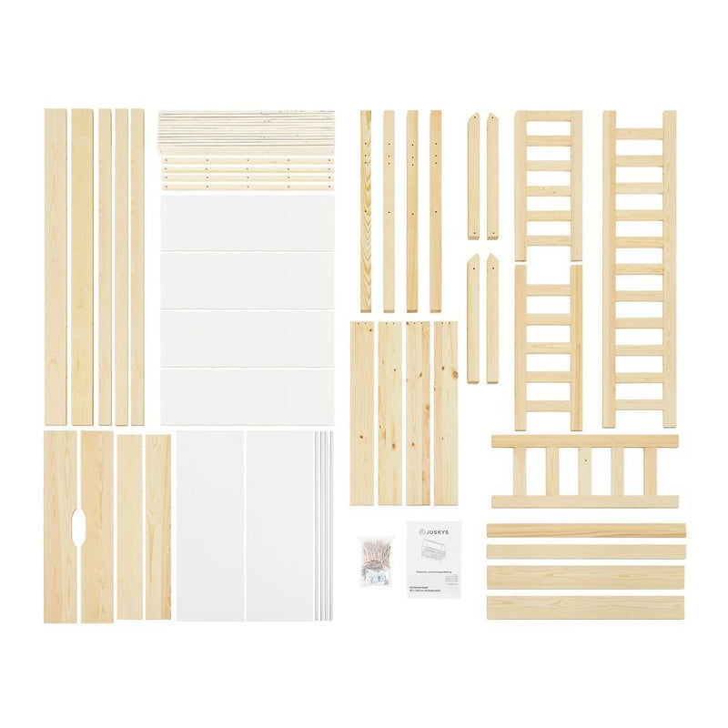 Stabilný rám z masívnej borovice zaručuje dlhú životnosť a jednoduchú údržbu. Latkový rošt s 13 lamelami poskytuje optimálnu podporu chrbta a vysokú nosnosť. Zábrana na troch stranách chráni dieťa pred pádom a umožňuje samostatné vstávanie.