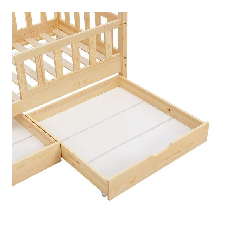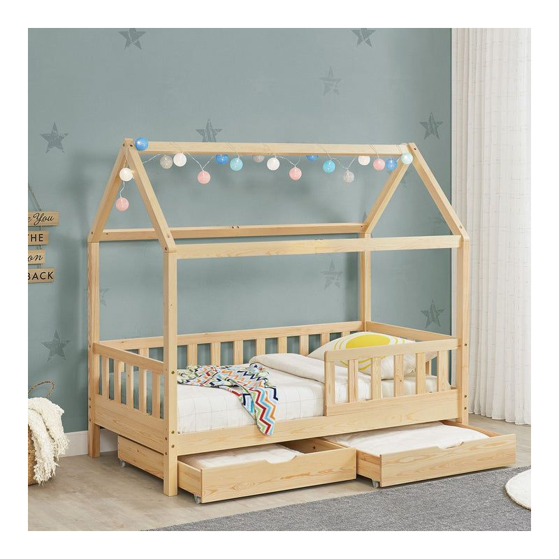 Domčeková posteľ vnesie do detskej izby radosť, bezpečie a priestor pre fantáziu. Originálny tvar domčeka podporuje kreativitu a umožňuje vytvoriť útulný kútik na spanie aj hranie. Veľké šuplíky pod posteľou udržia hračky aj lôžkoviny vždy po ruke a izba zostane uprataná.