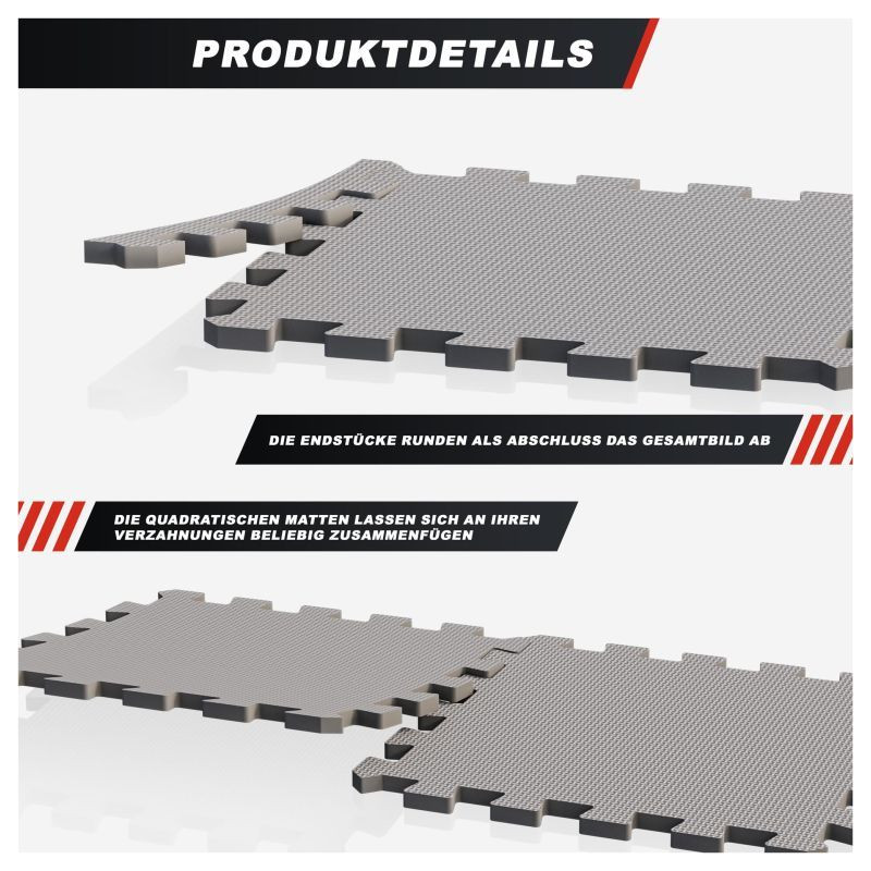 Praktický systém na zapínanie umožňuje rýchlu montáž a variabilné usporiadanie. Odolná pena tlmí nárazy a chráni podlahu pred poškodením. Jednoduchá údržba a dlhá životnosť.