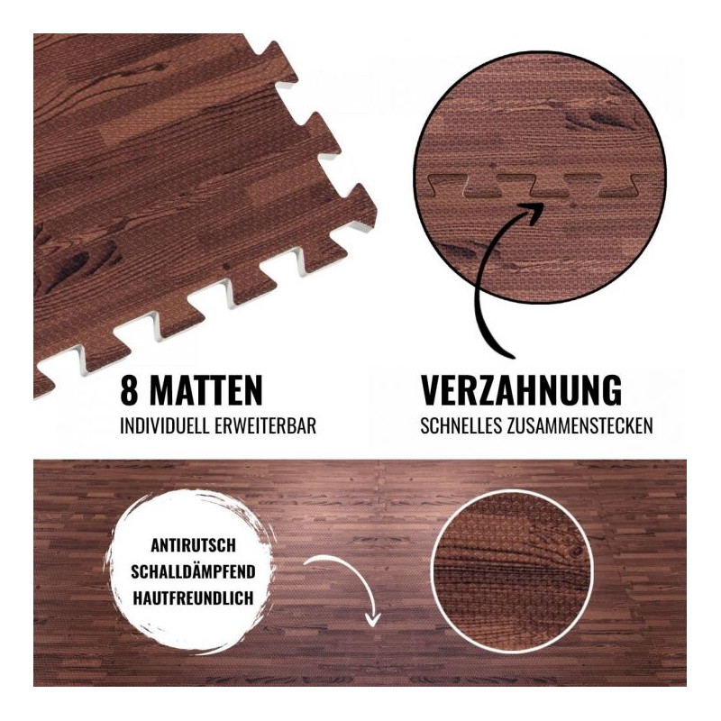 Gorilla Sports Sada ochranných podložiek, tmavé drevo, 8 ks