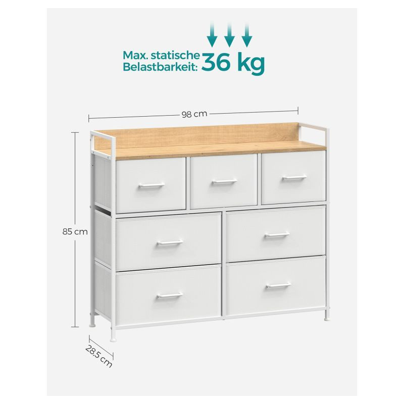 Komoda so 7 zásuvkami, biela/drevený efekt, 98 x 28,5 x 85