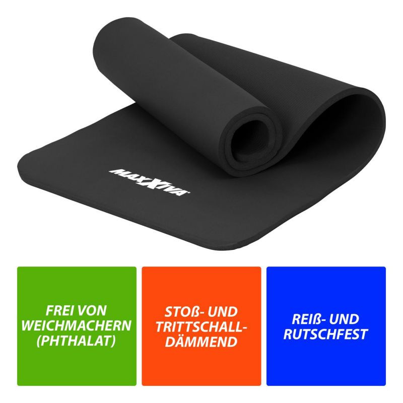 Fitness podložka je odolná proti roztrhnutiu a pošmyknutiu, je tiež vodeodolná (umývateľná) a tepelne izolačná, preto je vhodná aj na kempovanie. Okrem toho tlmí nárazy, takže je šetrná ku kĺbom. Bez zmäkčovadiel (bez ftalátov). Táto vysoko kvalitná gymnastická podložka z peny šetrnej k pokožke presvedčí výškou (hrúbkou) 15 mm. Po použití ju možno ľahko znova zrolovať.