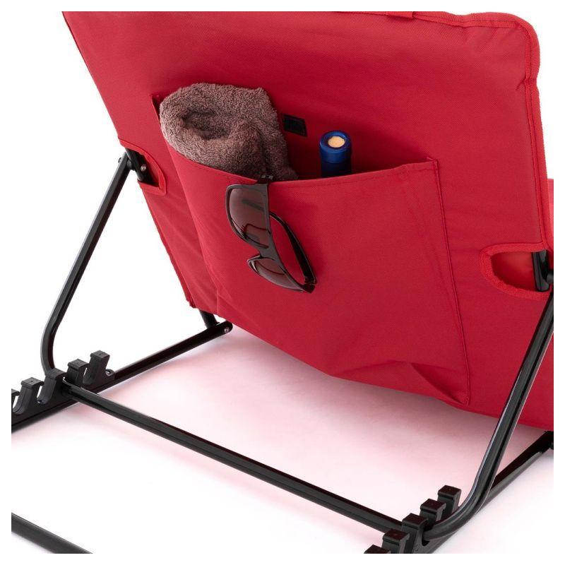 Táto plážová podložka je nevyhnutným doplnkom pre Vašu relaxáciu. Zdvihnuté operadlo zaisťuje pohodlný výhľad na hranie Vašich detí alebo na Vašu knihu. Polstrovaný poťah poskytuje pohodlné ležanie. Plážová podložka sa rýchlo zloží a možno ju ľahko transportovať pomocou praktického popruhu. Uterák, kniha alebo noviny môžu byť uložené do vrecka so suchým zipsom pripevneným k zadnej časti.