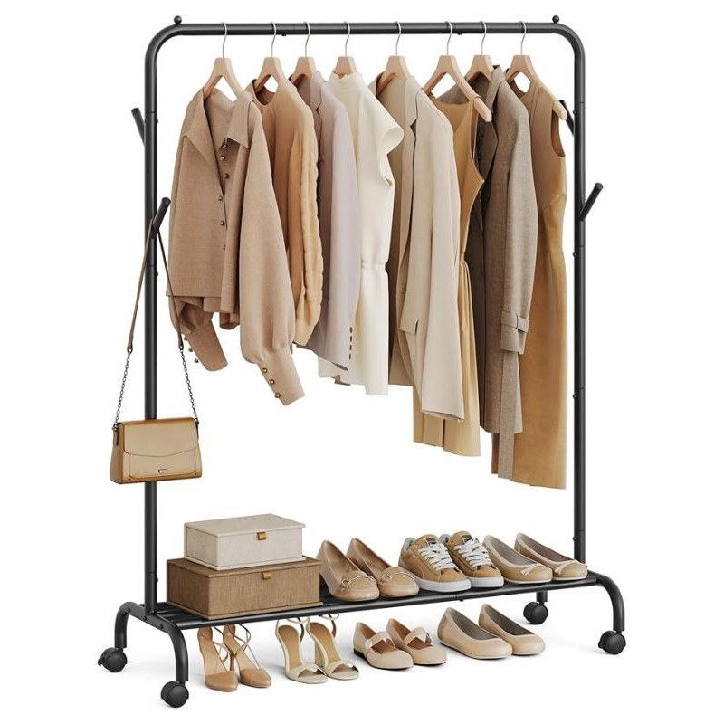 Potrebujete mať svoje oblečenie vždy po ruke a pekne usporiadané? Tento štýlový kovový vešiak v čiernej farbe ponúka elegantné riešenie pre vašu spálňu, predsieň alebo práčovňu. Vďaka svojej pevnej konštrukcii unesie až 50 kg a kolieska uľahčujú jeho presúvanie tam, kde ho práve potrebujete.