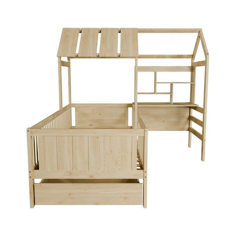 Detská posteľ Natural očarí každé dieťa i rodičov svojím originálnym vzhľadom pripomínajúcim domček. Vytvára bezpečné a inšpirujúce miesto na hranie, oddych a učenie. Praktické zásuvky a písací stôl umožňujú deťom mať všetko potrebné po ruke a zároveň udržiavať izbu upratanú.