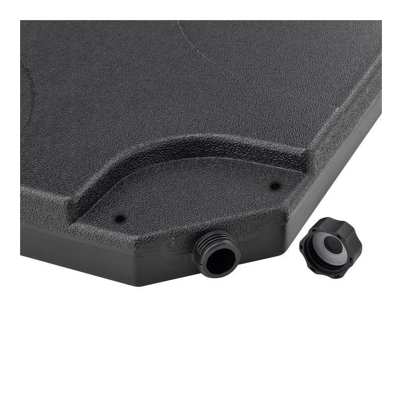 Odolný HDPE plast zaručuje dlhú životnosť a odolnosť voči poveternostným vplyvom a UV žiareniu. Každá doska má objem 15 l (20 kg) a celková nosnosť je až 80 kg. Integrované rukoväte a zaoblené rohy uľahčujú manipuláciu a zvyšujú bezpečnosť. Ideálne pre stojany na slnečníky s krížovou základňou.