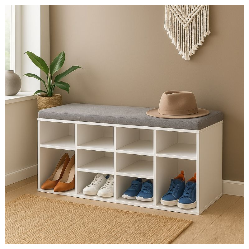 Obúvanie už nemusí byť zhon a nepohodlie. Tento botník s lavicou vám dopraje pohodlné miesto na sedenie a zároveň vnesie do predsiene poriadok. Čistý biely dizajn a mäkký vankúš pôsobí elegantne a zútulní priestor, ktorý denne víta vašu rodinu aj hostí.