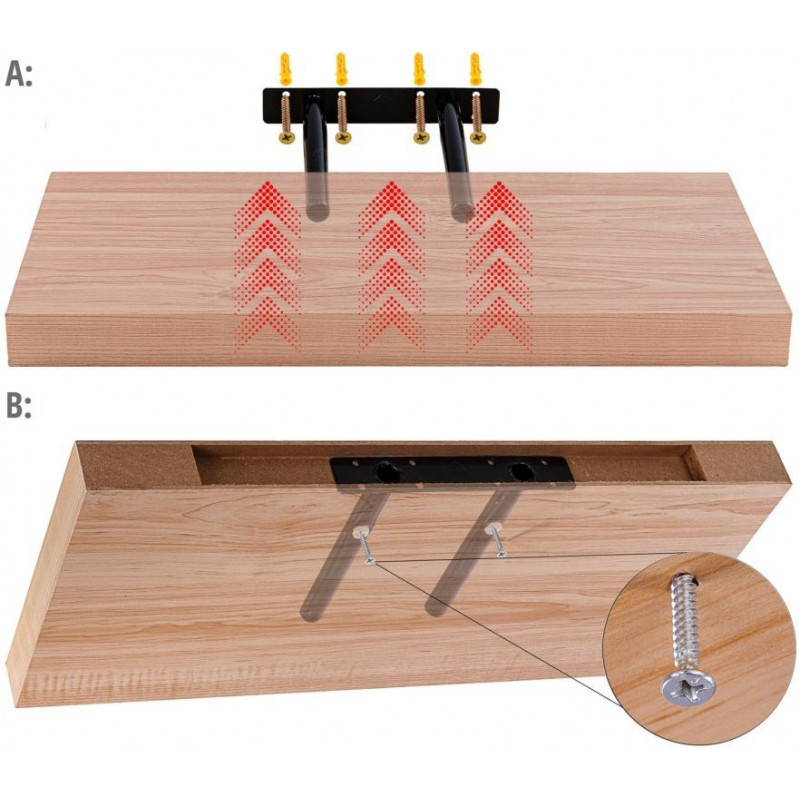 Upozornenie! Na polici sú zo spodnej strany dve malé dierky, ktoré slúžia na uchytenie spojovacieho materiálu ku konzole, na ktorej polica drží.