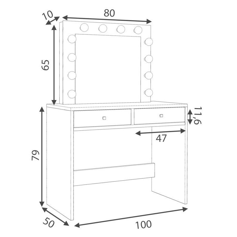 Tento toaletný stolík je dokonalou kombináciou glamour štýlu a profesionálneho osvetlenia - nesmie chýbať v domácej šatni, spálni tínedžera alebo v prestížnom kozmetickom salóne. Investujte do pohodlia a elegancie, ktoré zvýraznia vaše každodenné líčenie!