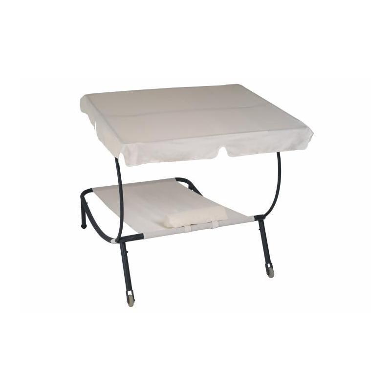 Komfortné ležadlo s integrovanou strieškou a vankúšom pre jednu osobu Vám zabezpečí hodiny relaxovania na záhrade, terase alebo pri bazéne. Plocha lehátka je potiahnutá 2x2 textíliou, ktorá je jednoduchá na údržbu, robustná a odolná proti roztrhnutiu. Vďaka oceľovým rúram a zosilneným nohám je záhradné lehátko mimoriadne stabilné. Lehátko je možné jednoducho premiestňovať vďaka dvom kolieskam. Striešku je možné flexibilne nastaviť podľa Vášho želania.